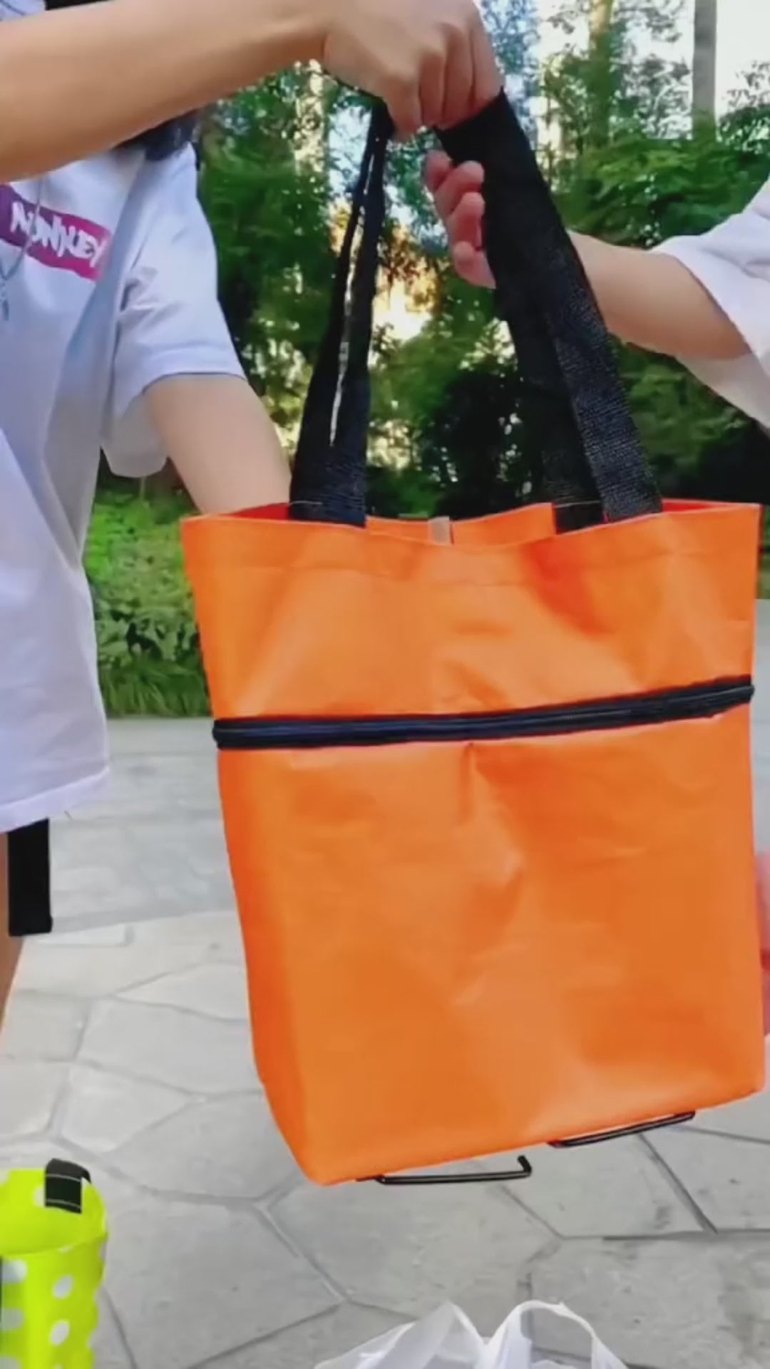 Úsalo como bolso de mano o carrito con ruedas. Se pliega fácilmente y es liviano, compacto y práctico para llevar a cualquier lado.